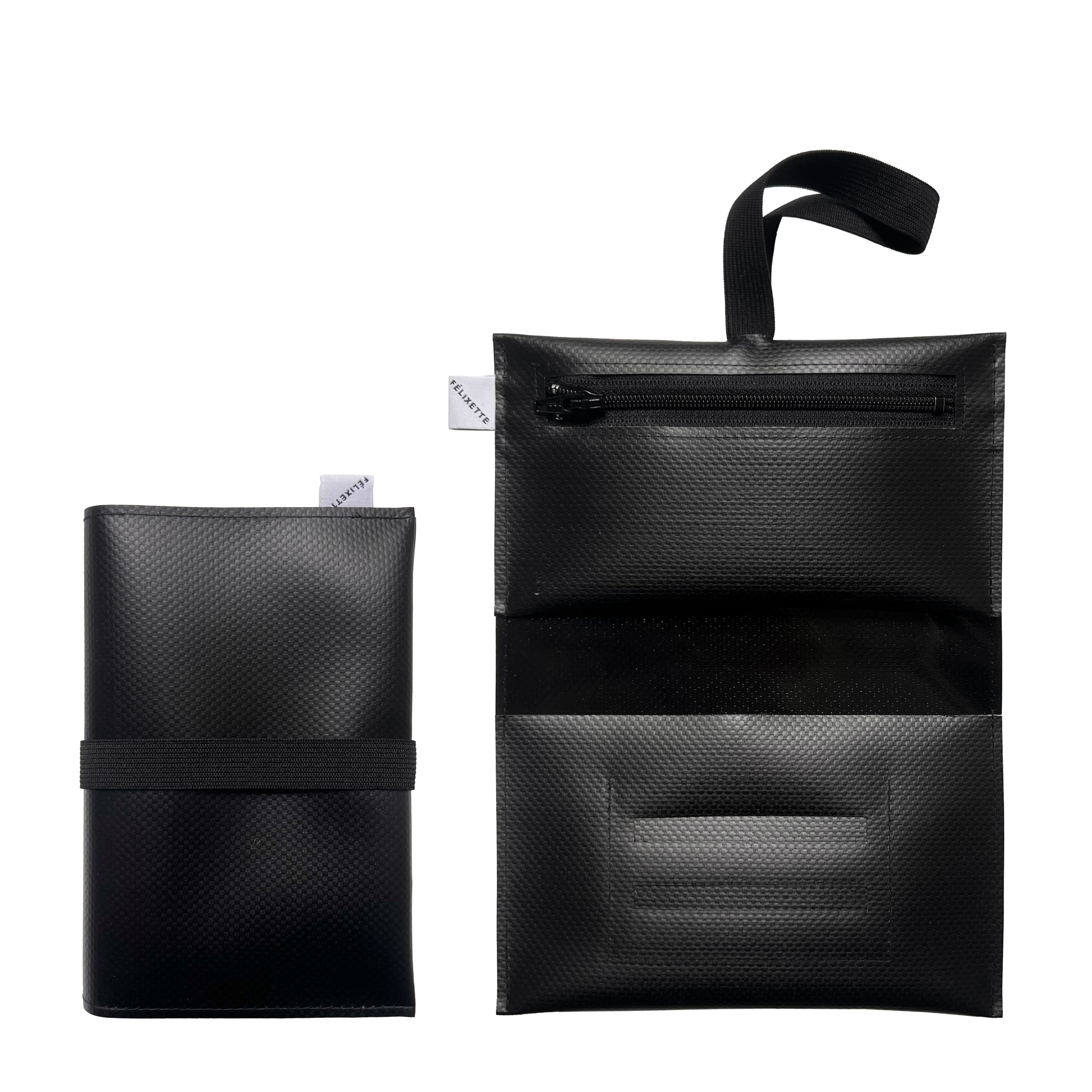 Cette pochette te permettra de réunir, astucieusement tout ce qu'il te faut pour rouler ta cigarette. Matière: Bâche noire Taille de la pochette pliée: 10 x 15,5 cm